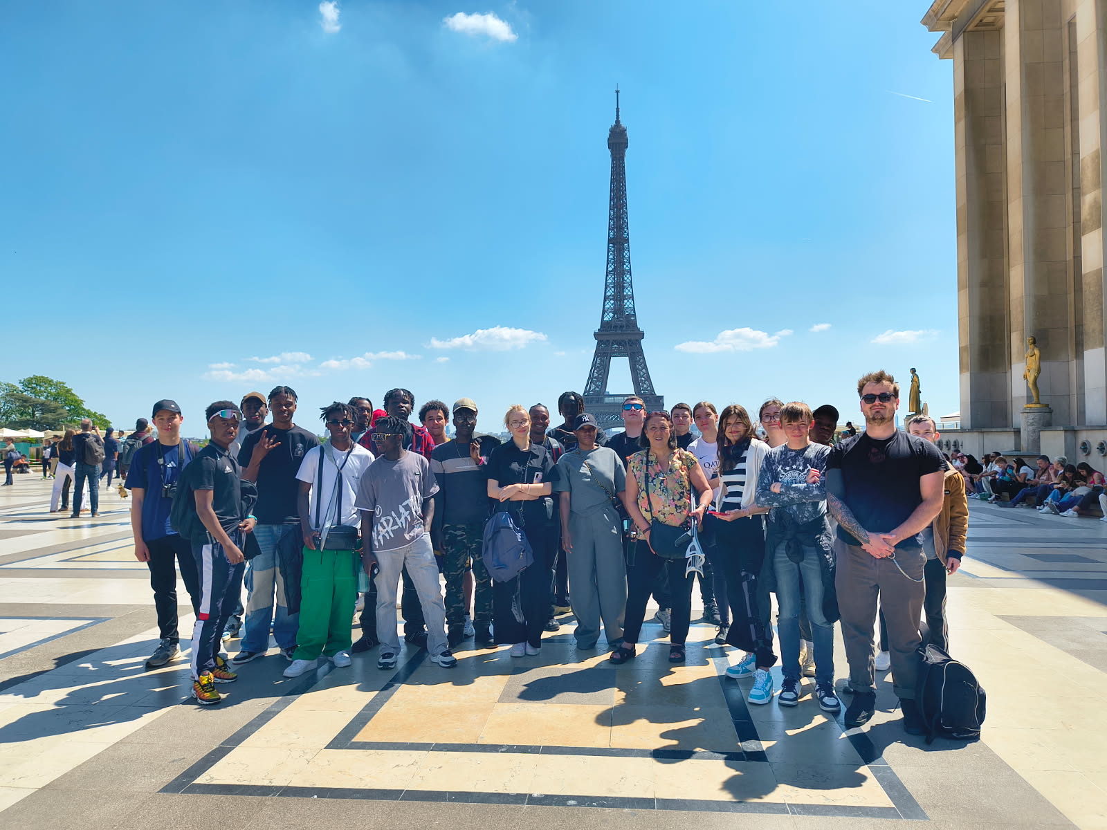 Arrivés près du Trocadéro, les élèves, émerveillés par la beauté du lieu et par la majestueuse Tour Eiffel, ont immortalisé ces moments en multipliant les photos. Cette première journée à Paris restera à jamais gravée dans leurs mémoires comme l’un de leurs souvenirs les plus enchanteurs. Rencontre également avec la Garde Républicaine, veillant à la sécurité des personnes sur leurs chevaux.