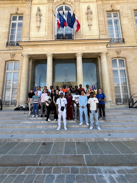 Nous avons enfin pu faire la photo sur le perron de l’Élysée, un moment émouvant que les élèves attendaient avec impatience. Pour eux, cela représentait une occasion inimaginable d’être, ne serait-ce qu’un instant, comme des artistes ou des chefs d’État, figés sur cette photo à l’entrée magistrale du Palais de l’Élysée.