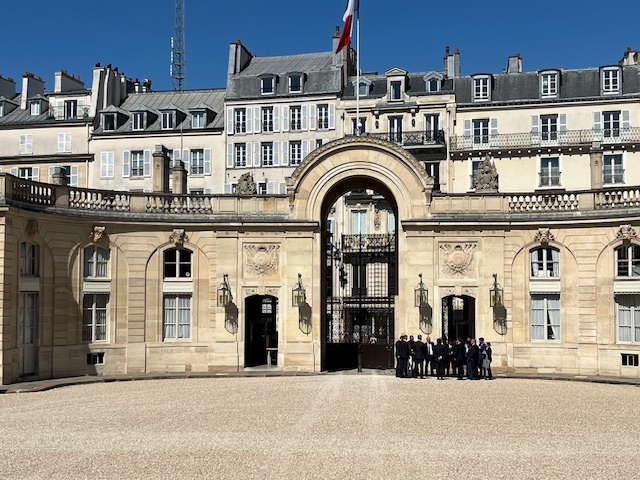 Notre attente devant le Palais de l’Élysée a été très longue, car l’agenda de notre Président a subi un changement de dernière minute en accueillant le Premier ministre belge. C’est alors que notre Proviseur a fait la grande surprise à nos élèves en nous rejoignant. Au bout d’une heure d’attente, nous avons enfin pu entrer dans la cour de l’Élysée, un lieu emblématique où pénètrent des chefs d’État et des hauts responsables, représentant ainsi le pouvoir de notre pays, la France.