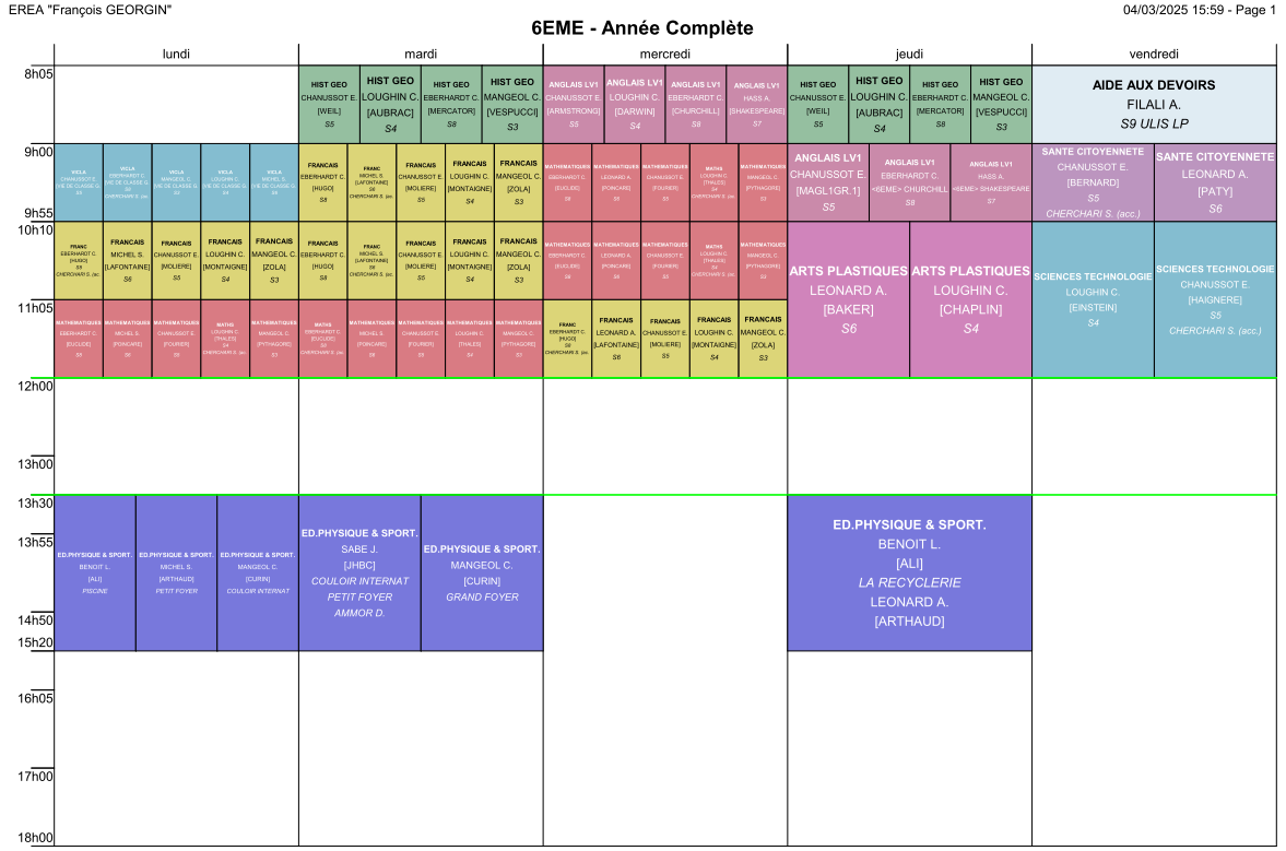 - Les matinées (exception de la première heure du lundi matin) sont dédiées prioritairement aux savoirs fondamentaux.
